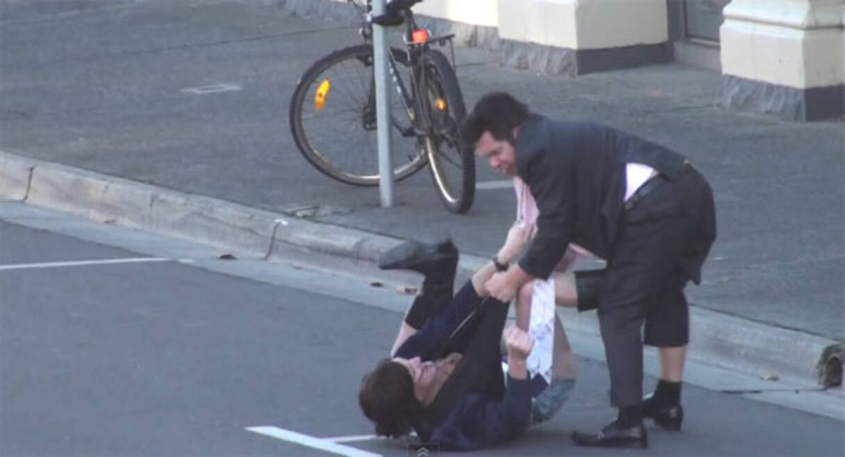 暴行動画 ミニスカ女子とスーツ男子が殴り合い 女子のパンツ見えまくり 男子のスーツ破れまくり 12年5月11日 エキサイトニュース